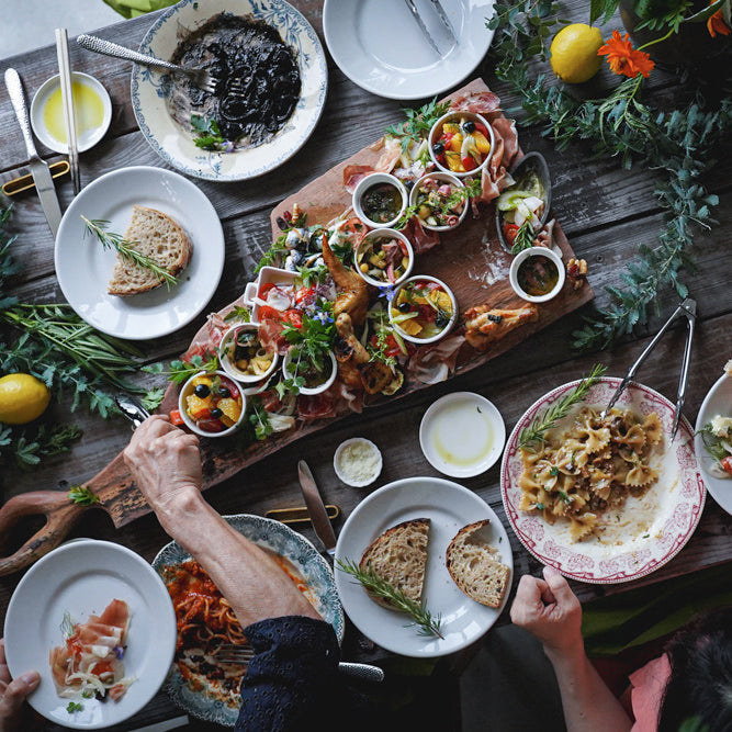 ローズマリー、豚肉、牛肉で作るトマトソース